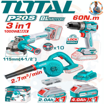 طقم كومبو 3قطع 20فولت 2بطارية 2-4امبير توتال_TOSLI241192