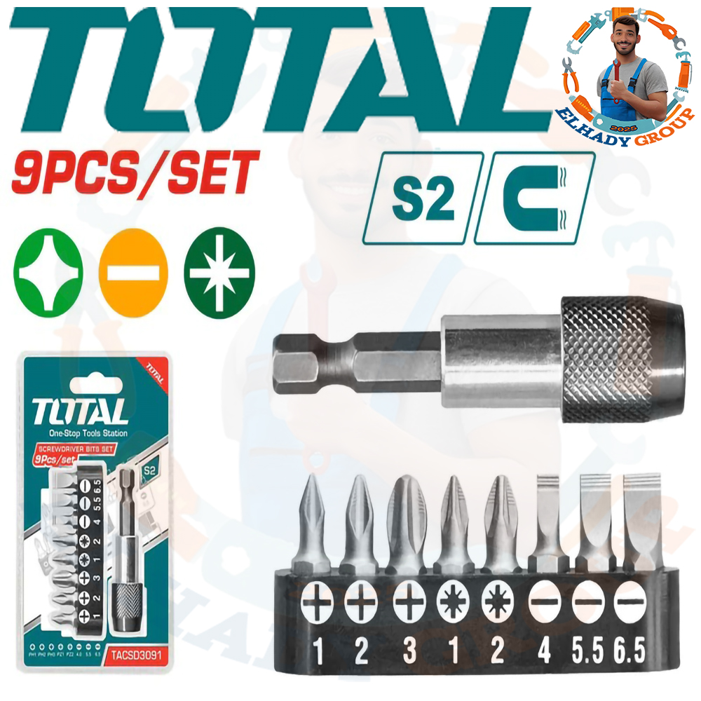 طقم سنون مفك 9قطع حامل اتوماتيك توتال_TACSD3091