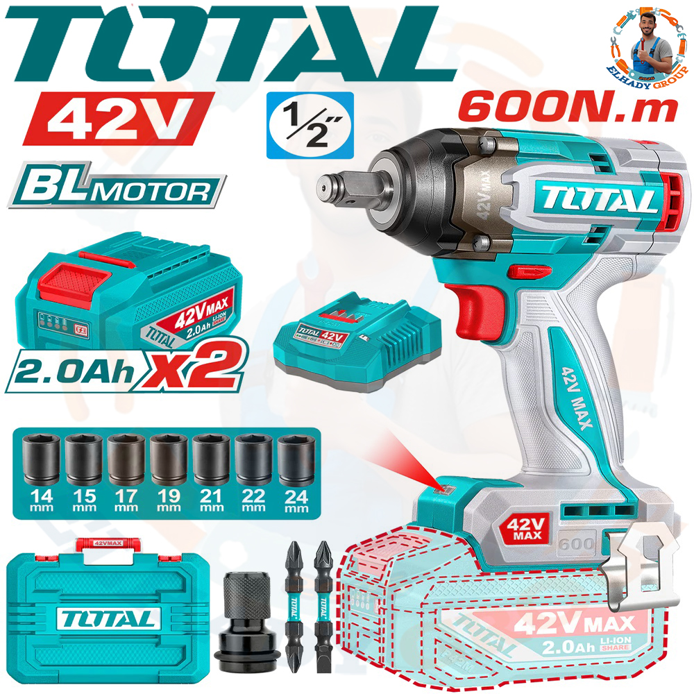 دريل 1/2″ 42فولت 600نيوتن براشلس 2بطارية 2امبير توتال_TIWLI42602
