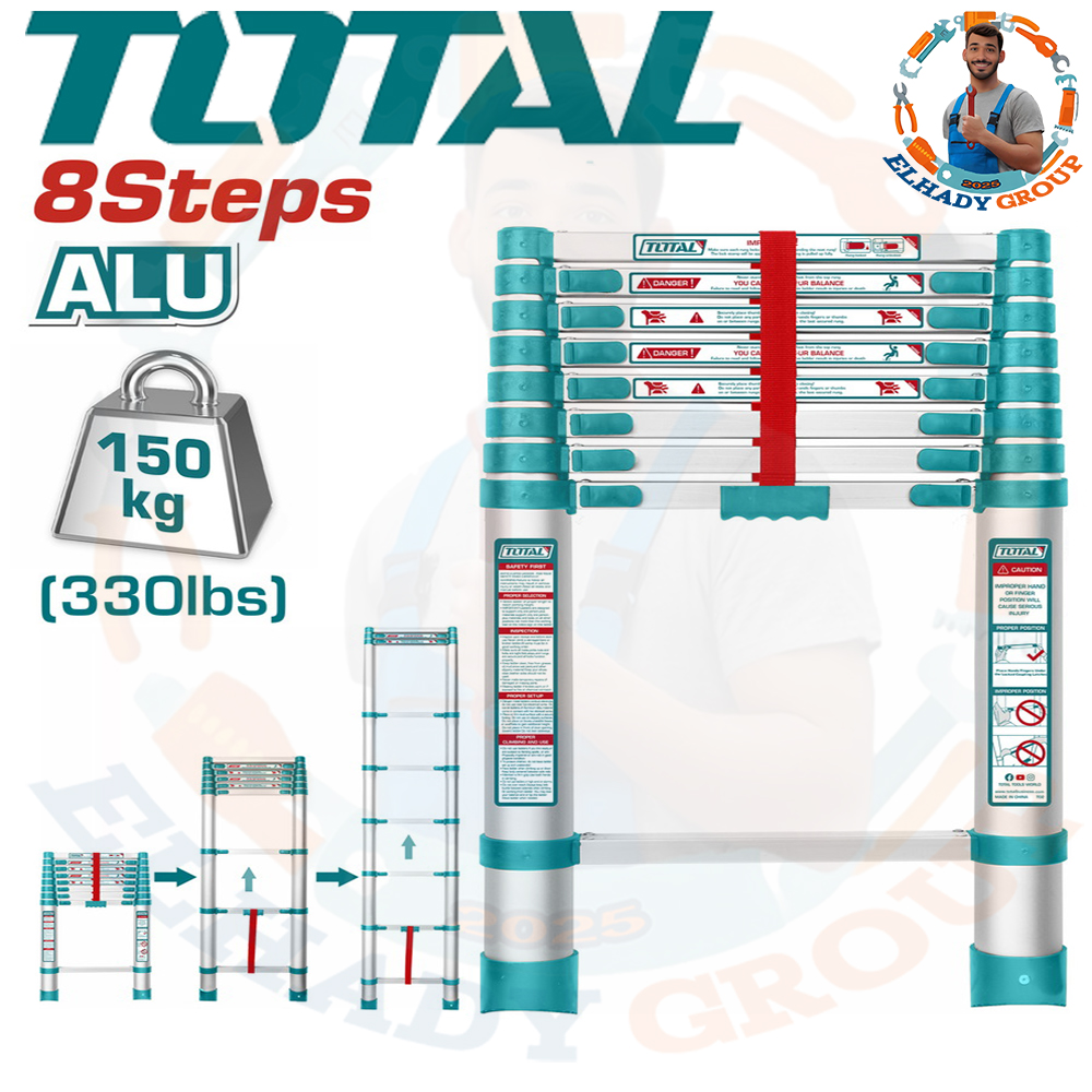 سلم الومنيوم تليسكوبى 2.6متر 8درجة توتال_THLAD08081