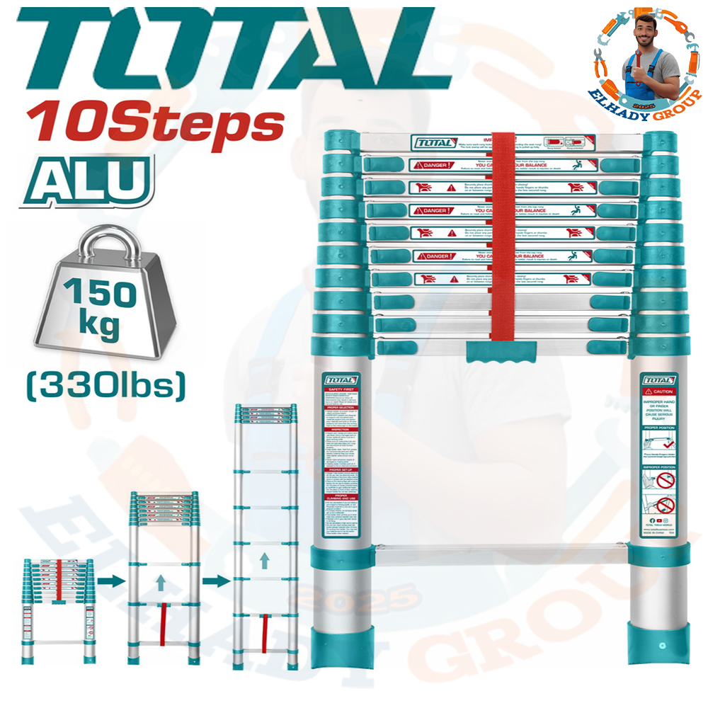 الرئيسية عدد يدوية سلم سلم الومنيوم تليسكوبى 3.2متر 10درجة توتال_THLAD08101