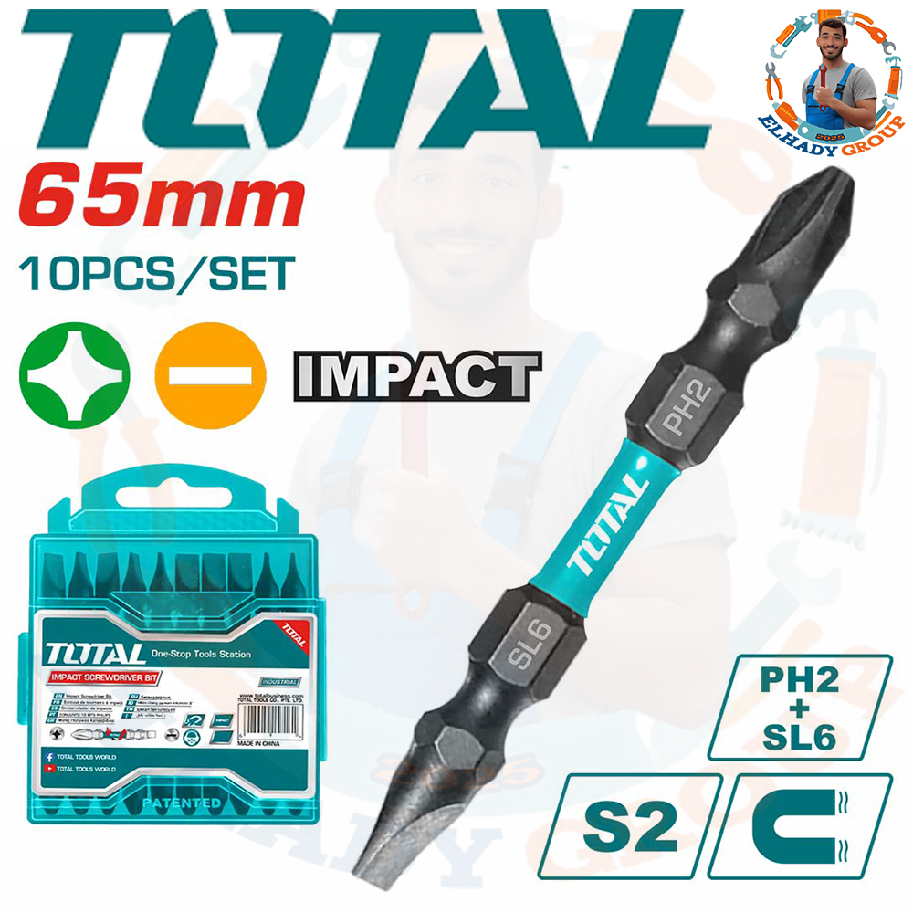 سن مفك 65مم اتجاهين صليبة وعادة اسود 2قطعة توتال_TACIM72HL665