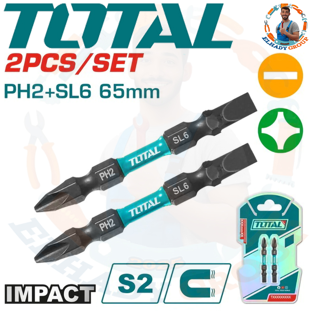 سن مفك 65مم اتجاهين صليبة وعادة اسود 2قطعة توتال_TACIM72HL665