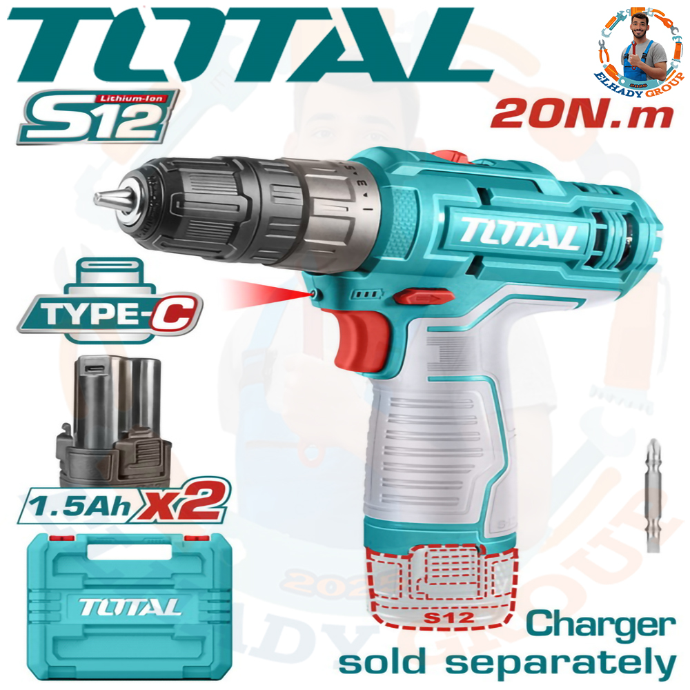 شنيور 12فولت 10مم 2بطارية قلم بدون شاحن (شاحن تايب سىtype-c) توتال_TDLI12206