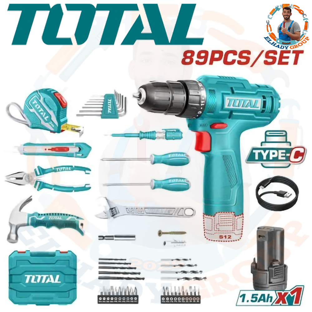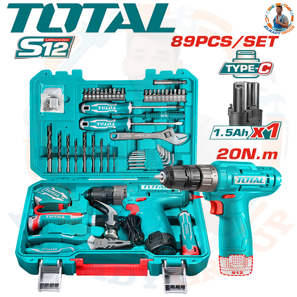 طقم عدة 89قطعة شنيور 12فولت 1بطارية قلم توتال_THKTHP10892