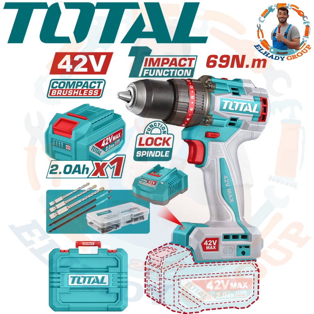 شنيور 13مم 42فولت 69نيوتن دقاق براشلس 1بطارية 2امبير توتال_TIDLI426981