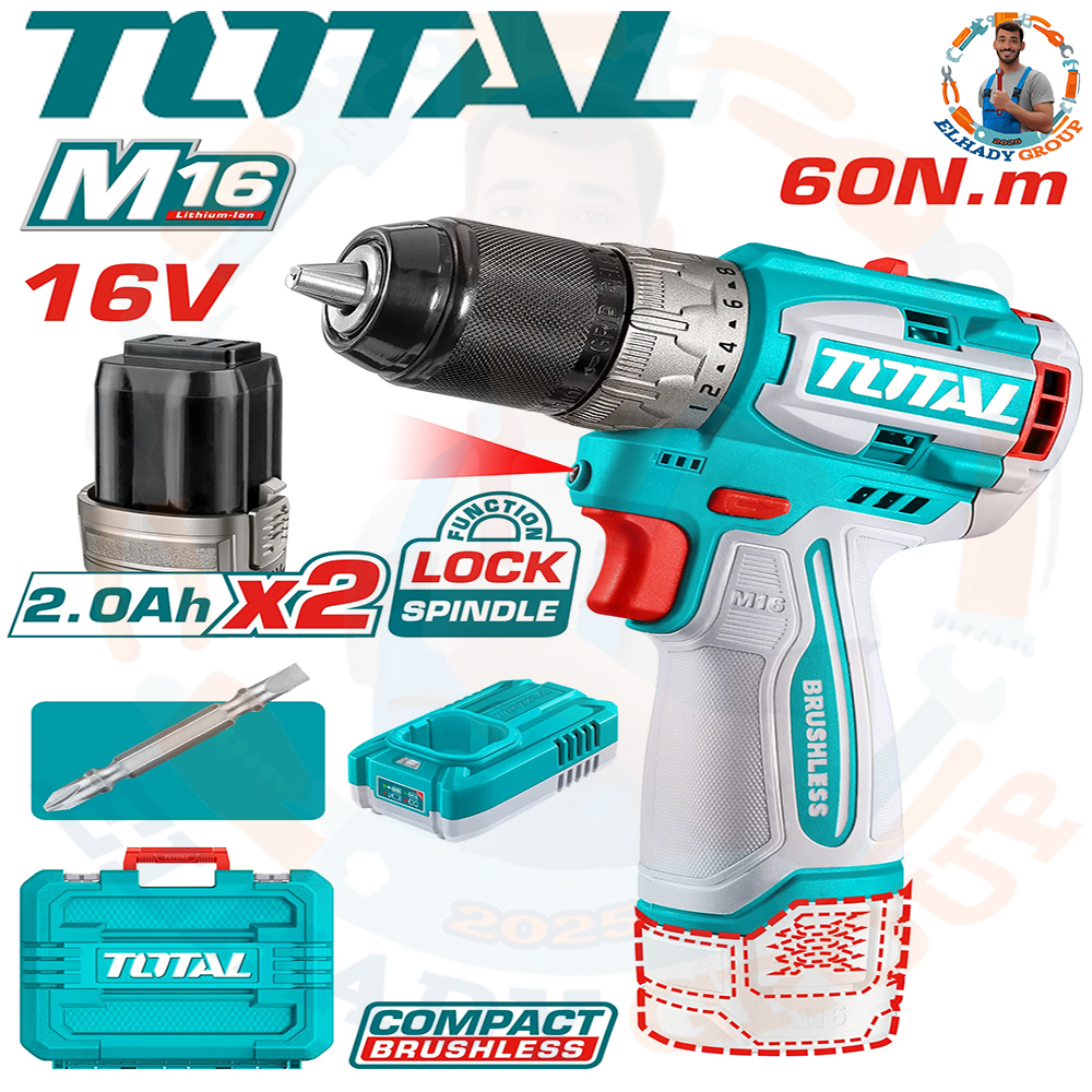 شنيور 16فولت 13مم 60نيوتن 2بطارية 2امبير بدون شربون توتال_TDLI16682