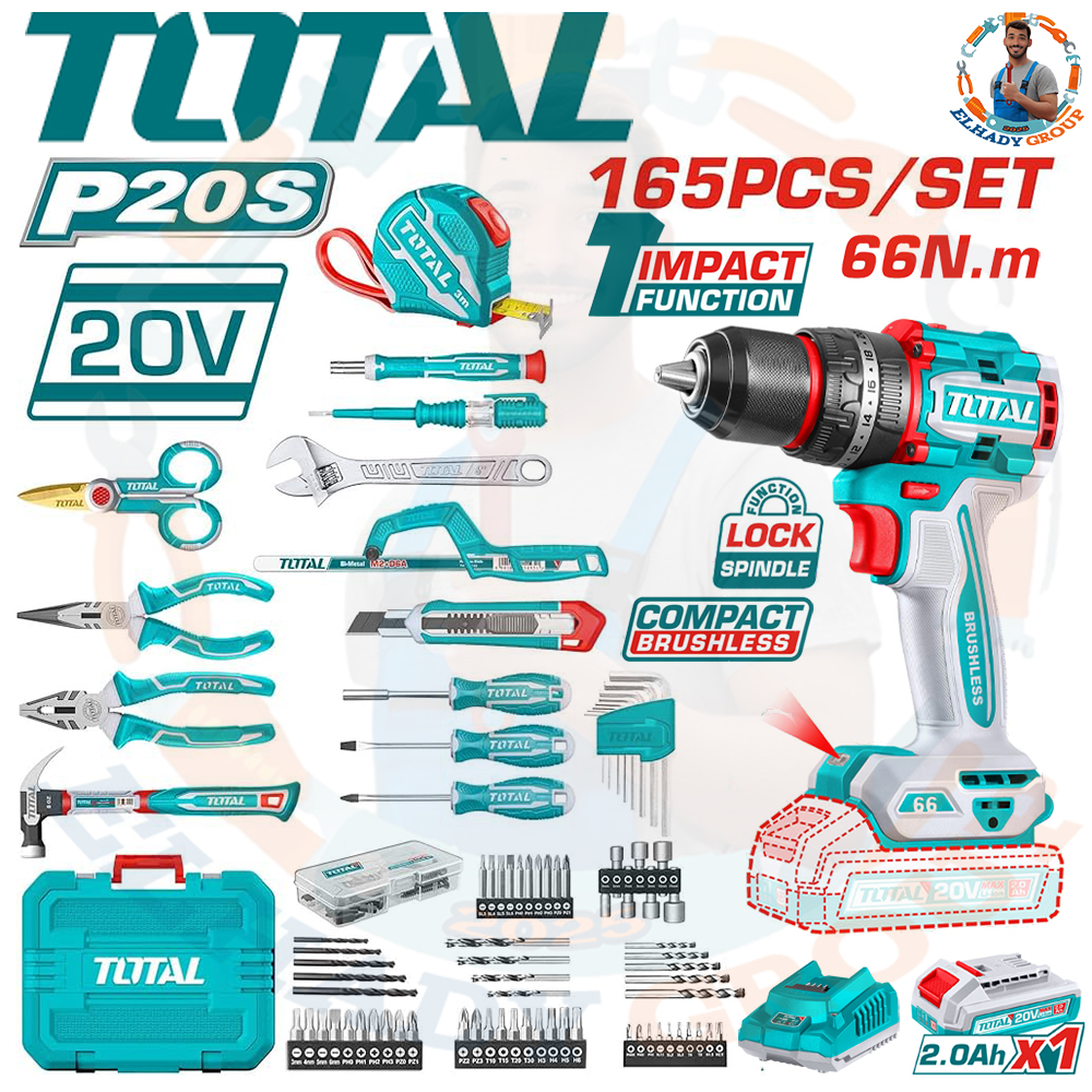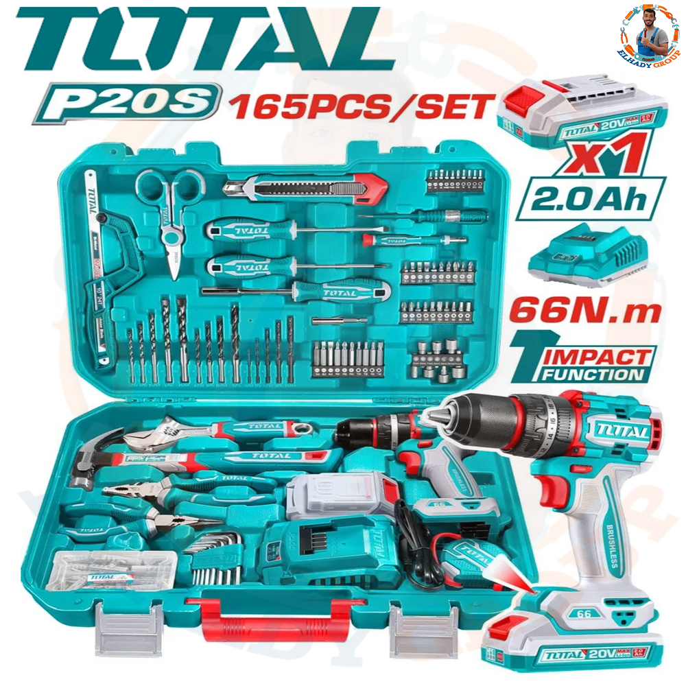 طقم عدة 165قطعة شنيور 66نيوتن دقاق 1بطارية 2امبير توتال_THKTHP11652