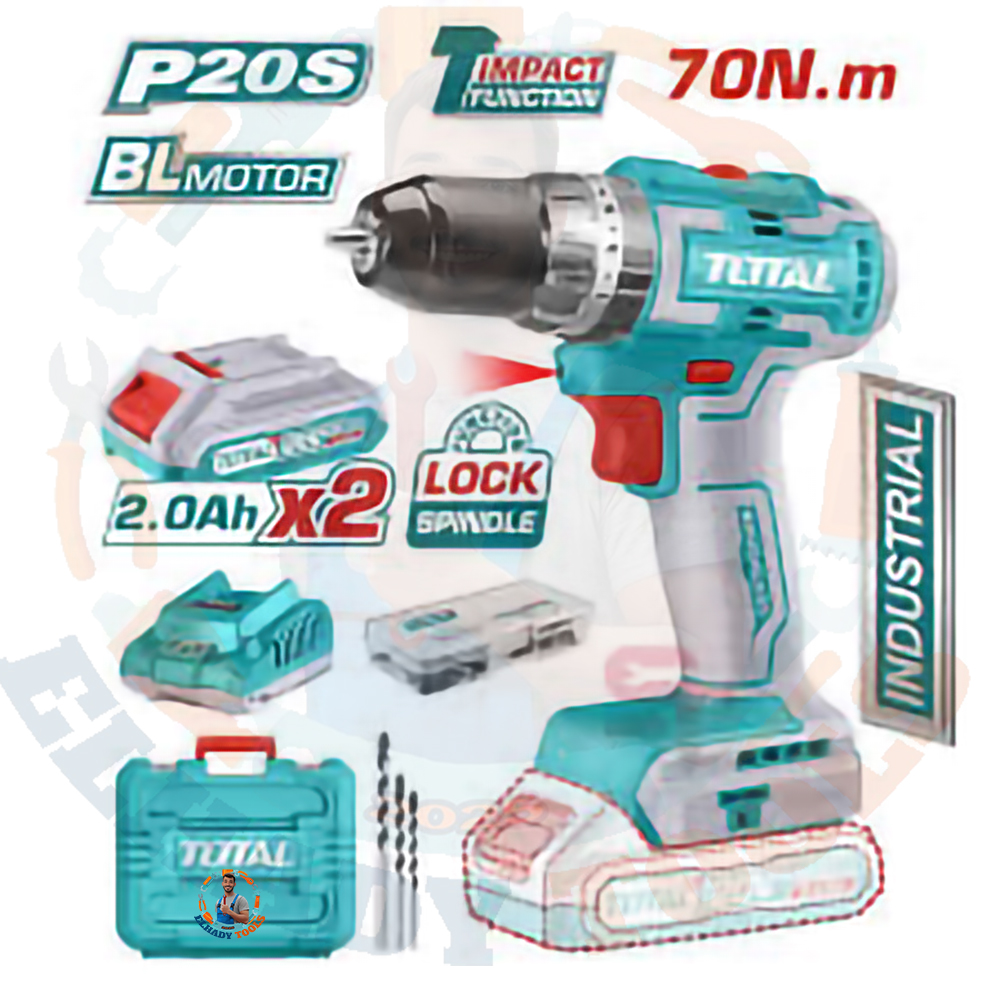 شنيور 20فولت 13مم 2بطارية 2امبير دقاق 70نيوتن بدون شربون توتال_TIDLI20605