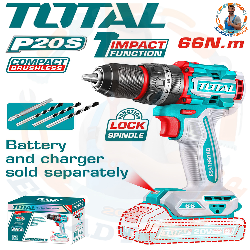 شنيور 20فولت 13مم 66نيوتن دقاق بدون بطارية توتال_TIDLI206681