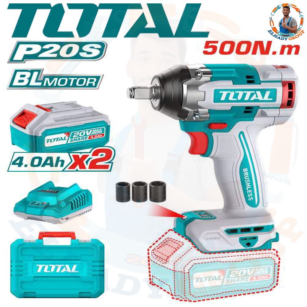 دريل 2/1″ 20فولت 500نيوتن 2بطارية 4امبير توتال_TIWLI2050