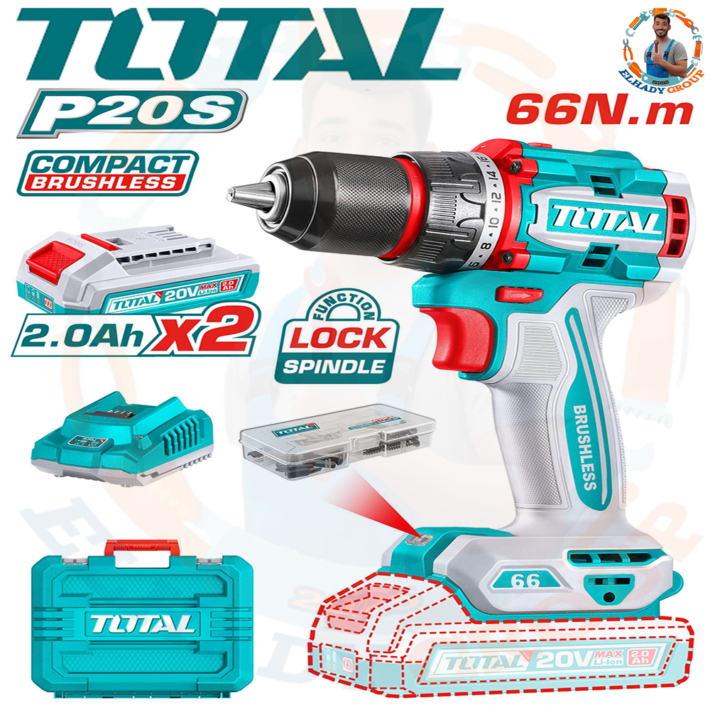 شنيور 20فولت 66نيوتن 13مم براشلس 2بطارية 2امبير توتال_TDLI20668