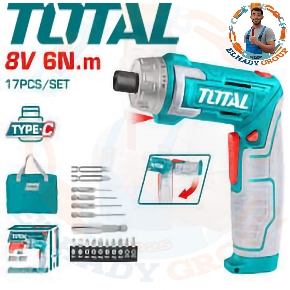 شنيور 8فولت سن مفك 1/4″ 6نيوتن (تايب سى_USB type-C) توتال_TSDLI0802