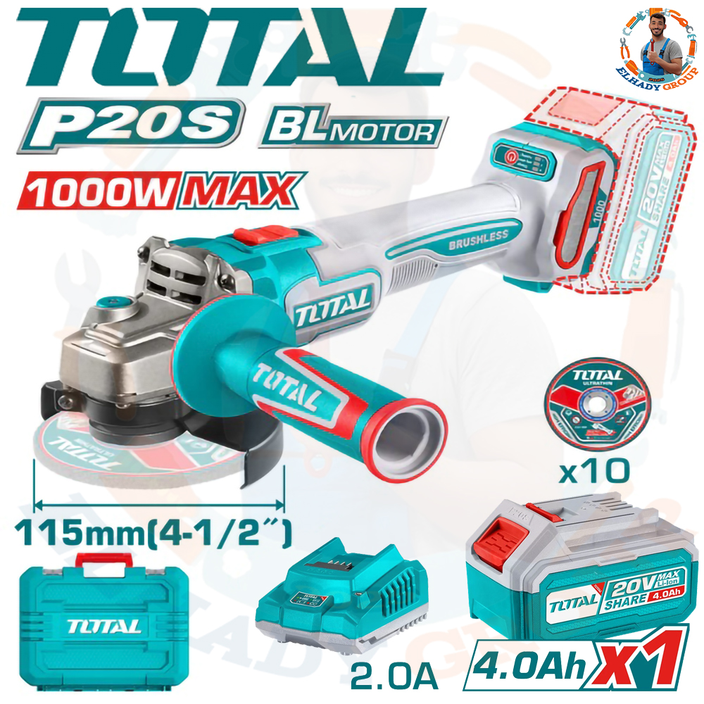 صاروخ 4.5″ 20فولت 1بطارية 4امبير بدون شربون توتال_TAGLI271531