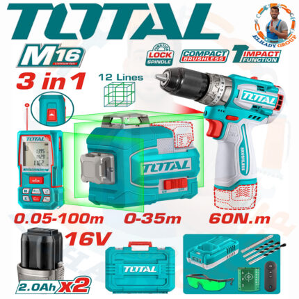 طقم كومبو 3قطع 16فولت 2بطارية 2امبير توتال_TOSLI250101