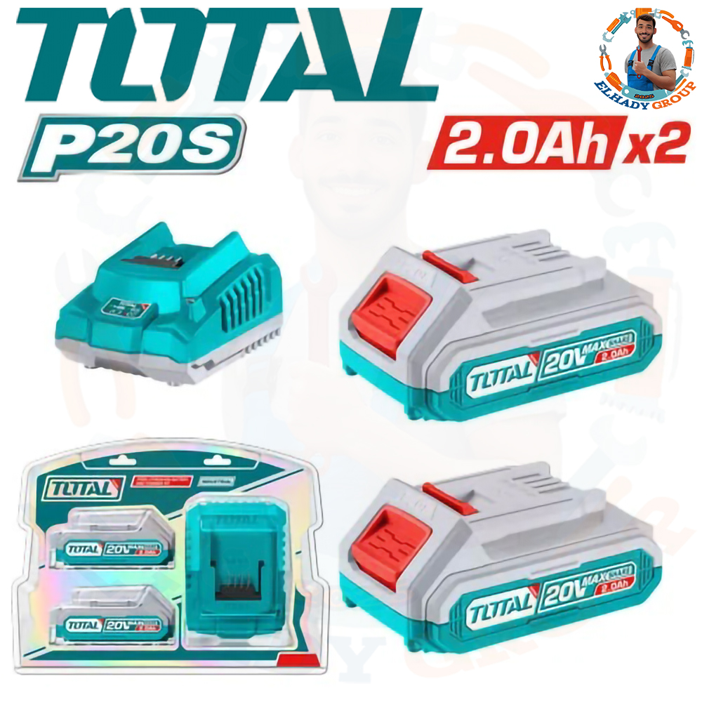 طقم بطارية وشاحن 3قطعة (2بطارية 20فولت 2امبير-1شاحن) توتال_TFBCPK1222