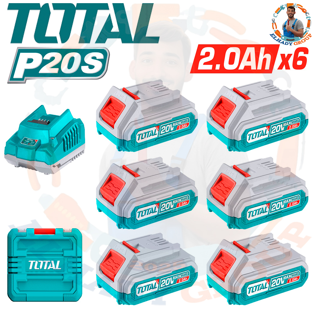 طقم بطارية وشاحن 7قطع (6بطارية 20فولت 2امبير-1شاحن) توتال_TFBCLI20611