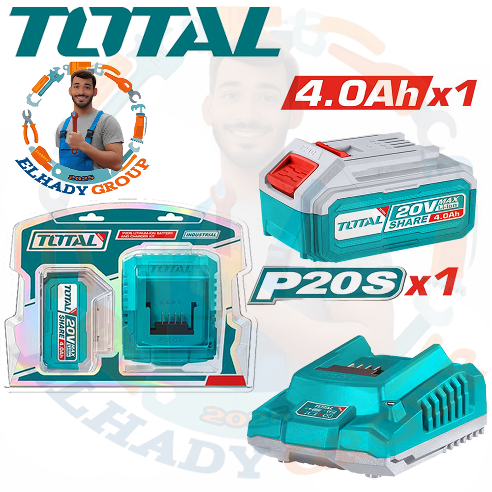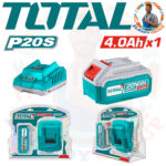 طقم بطارية وشاحن 2قطعة (1بطارية 20فولت 4امبير-1شاحن) توتال_TFBCPK1214
