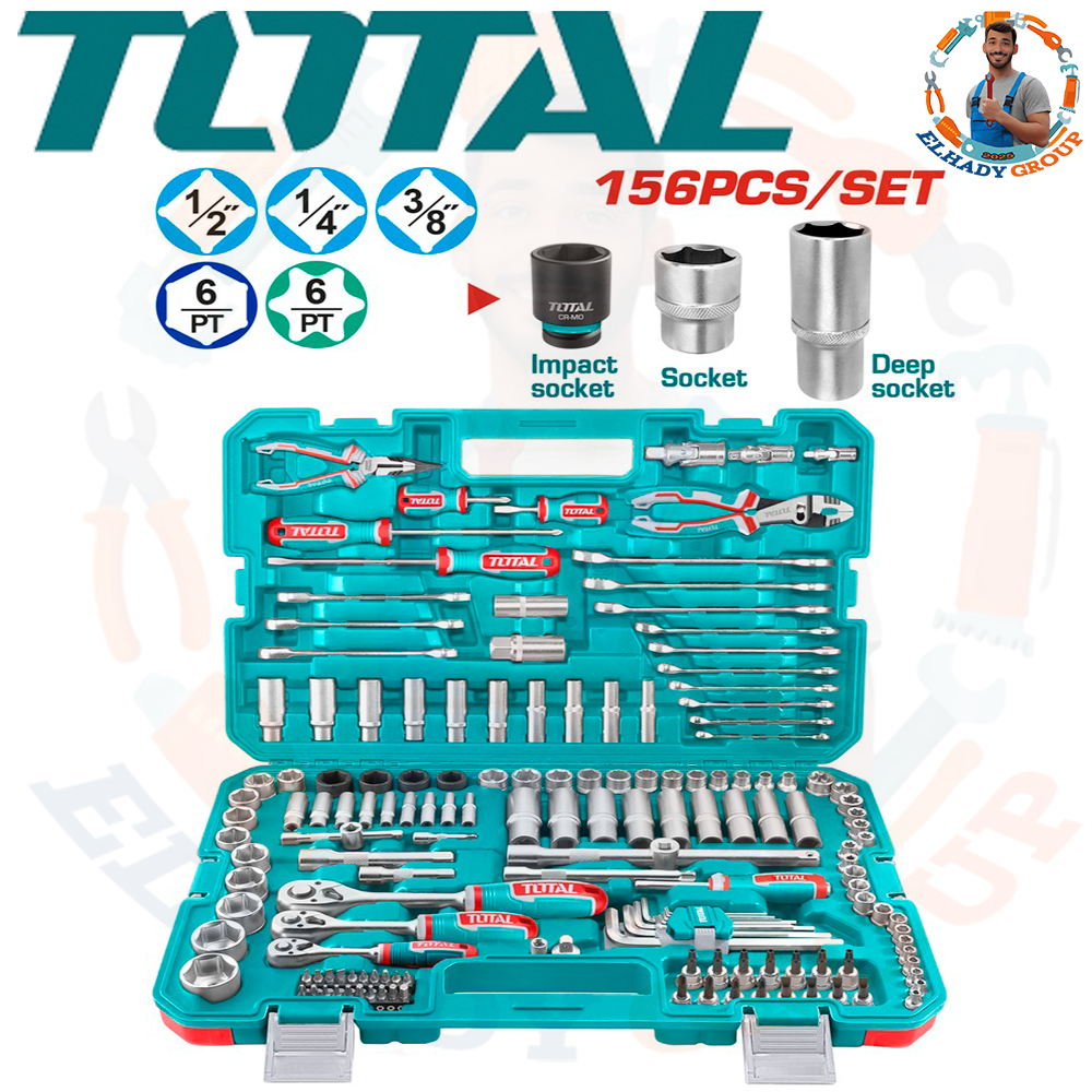 طقم عدة يدوية ولقم 156قطعة علبة بلاستيك توتال_THKTHP21566