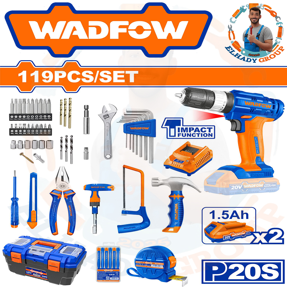 طقم عدة 119قطعة شنيور 20فولت دقاق 2بطارية 1.5امبير وادفو_WDT1B119
