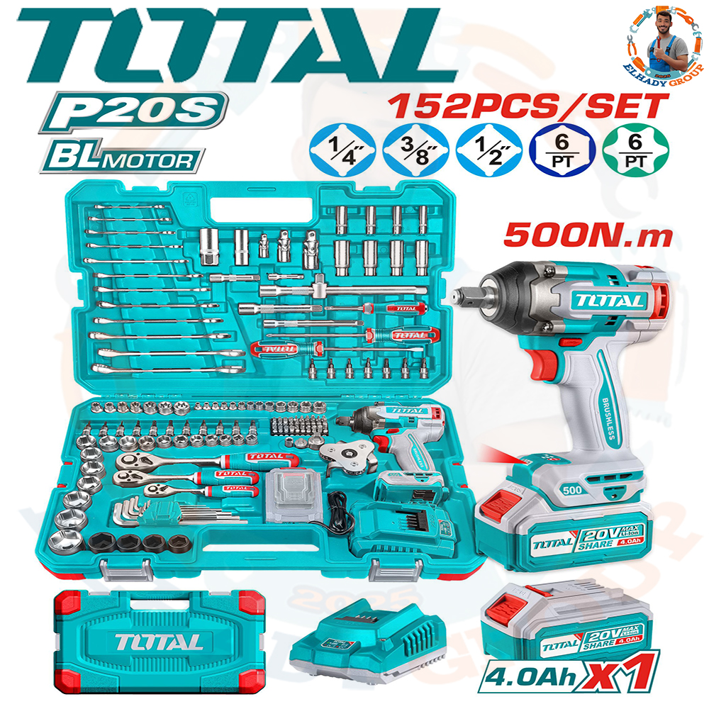 طقم عدة 152قطعة دريل 1/2″ 20فولت 500نيوتن 1بطارية 4امبير توتال_THKTHP31522