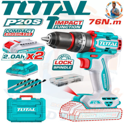 شنيور 13مم 20فولت 76نيوتن دقاق براشلس 2بطارية 2امبير توتال_TIDLI20768