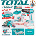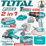 طقم كومبو 2قطعة 20فولت 2بطارية 4امبير شنيور 66نيوتن وصاروخ 4.5″ 1000وات توتال_TCKLI20273