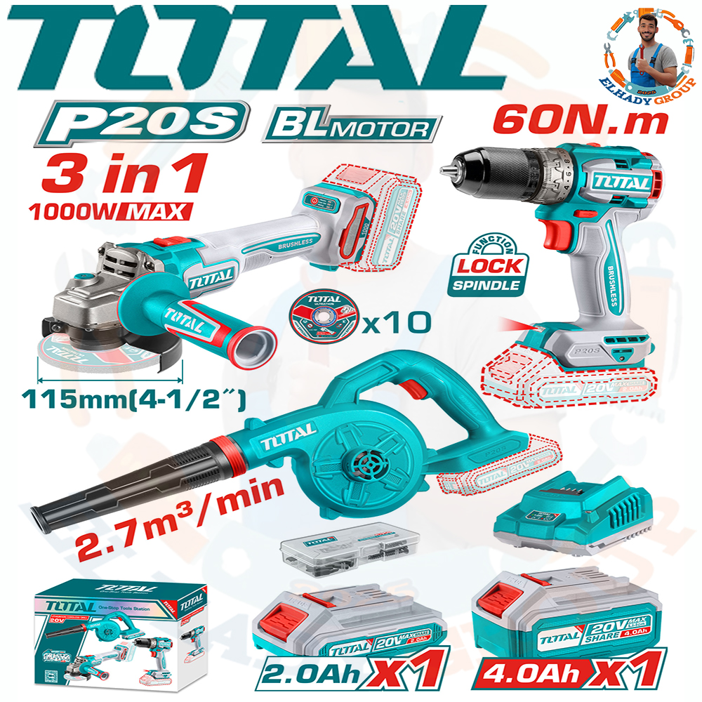 طقم كومبو 3قطع 20فولت 2بطارية 4امبير توتال_TOSLI241198