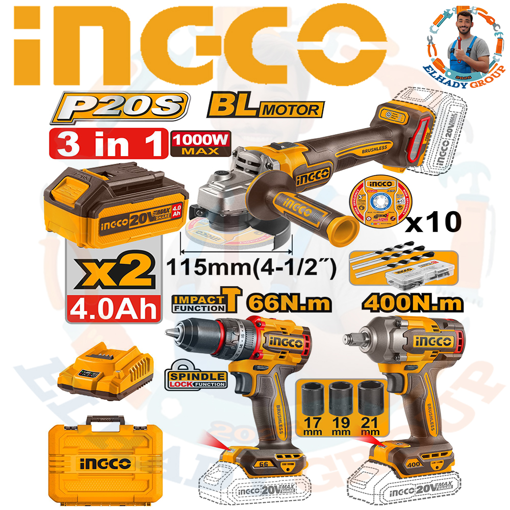 طقم كومبو 3قطع 20فولت 2بطارية 4امبير انكو_COSLI241291