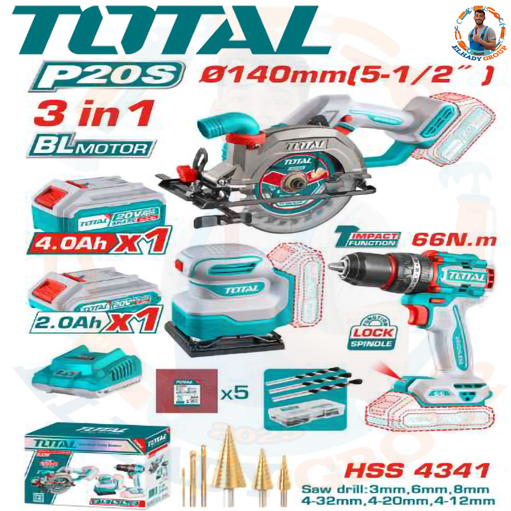 طقم كومبو 3قطع 20فولت 2بطارية 2-4امبير توتال_TOSLI241193