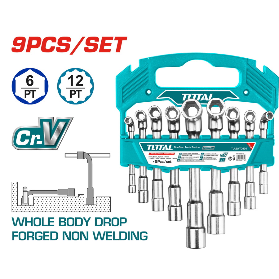 طقم مفتاح بيبة 9قطع 7-19مم توتال TLASWT0901