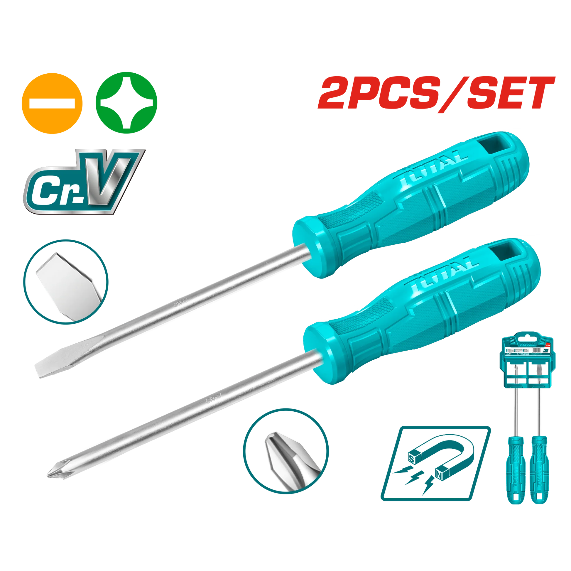 Total 2 Pcs Screwdriver Set THTDC250201 | طقم مفك صليبة وعادة صلب