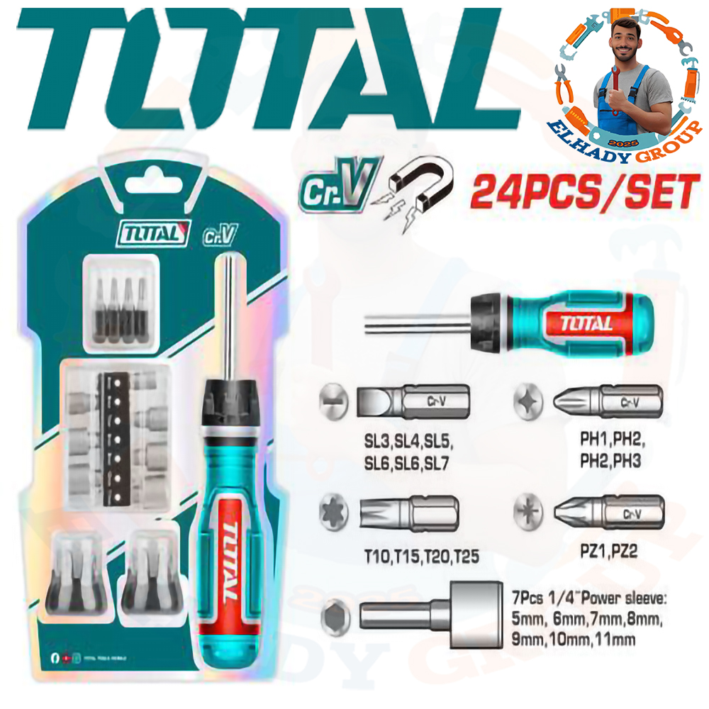 طقم مفك سنون ولقم 24قطعة راتشة حرفT توتال_TACSD30186