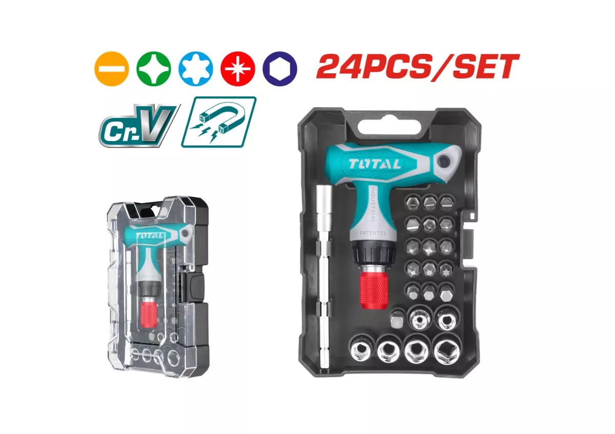 طقم مفك سنون ولقم 24قطعة راتشة حرفT توتال_TACSD30186