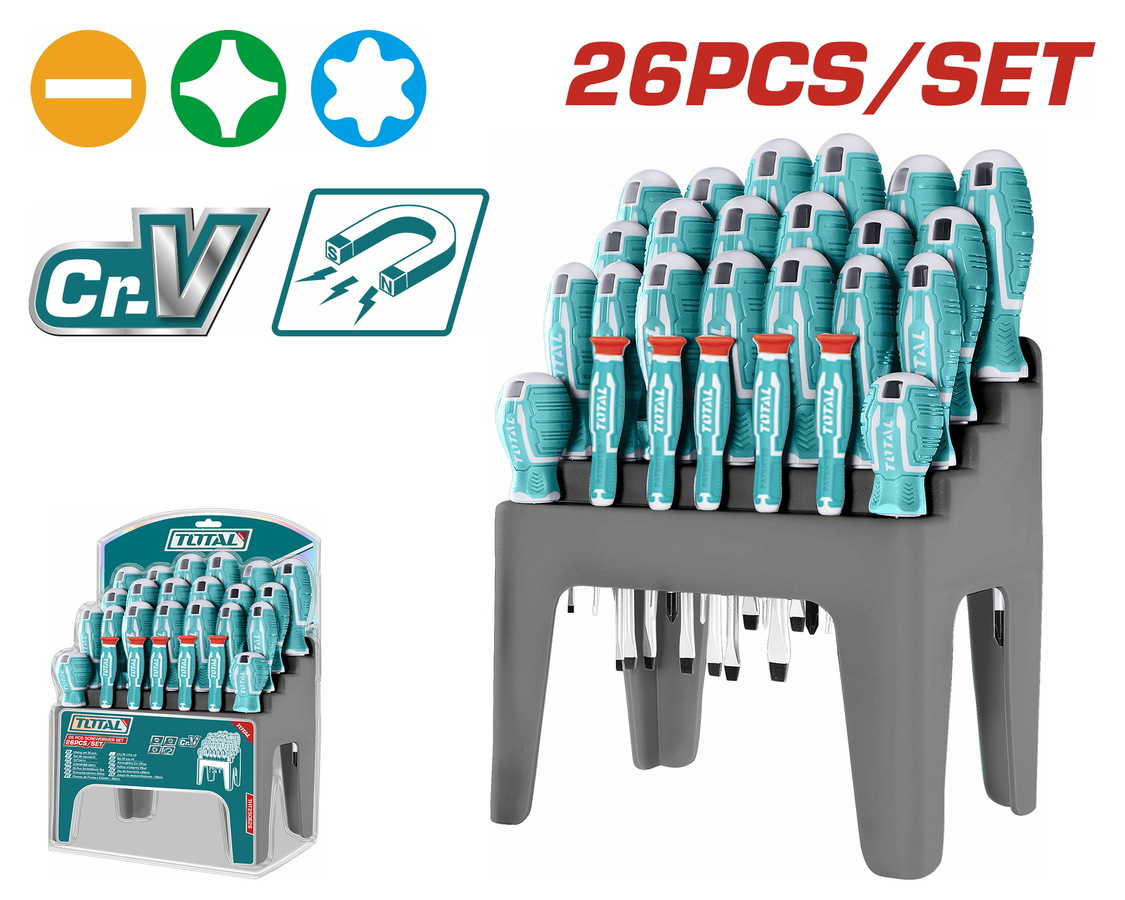 طقم مفك 26قطعة يد كاوتش استاند توتال_THT250626