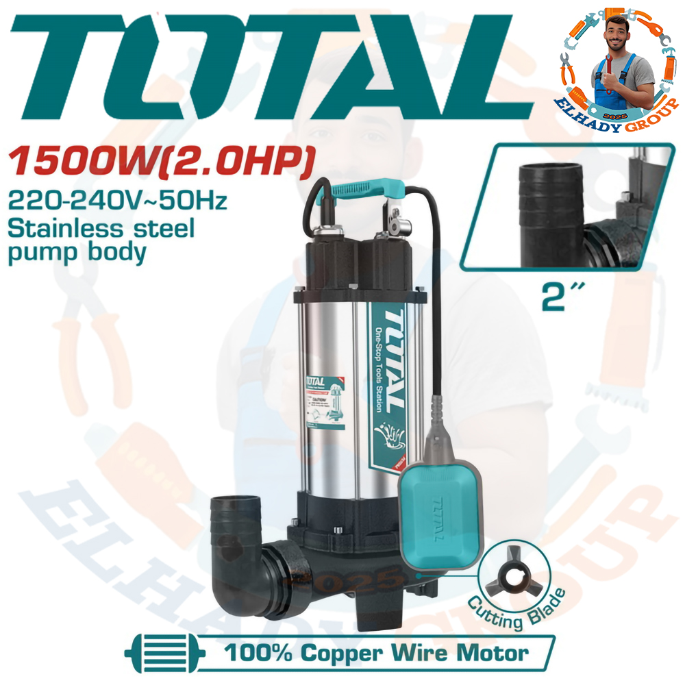 موتور مياة غاطس 2حصان 1500وات 2″ استانلس 14.5متر توتال_TWP7150026