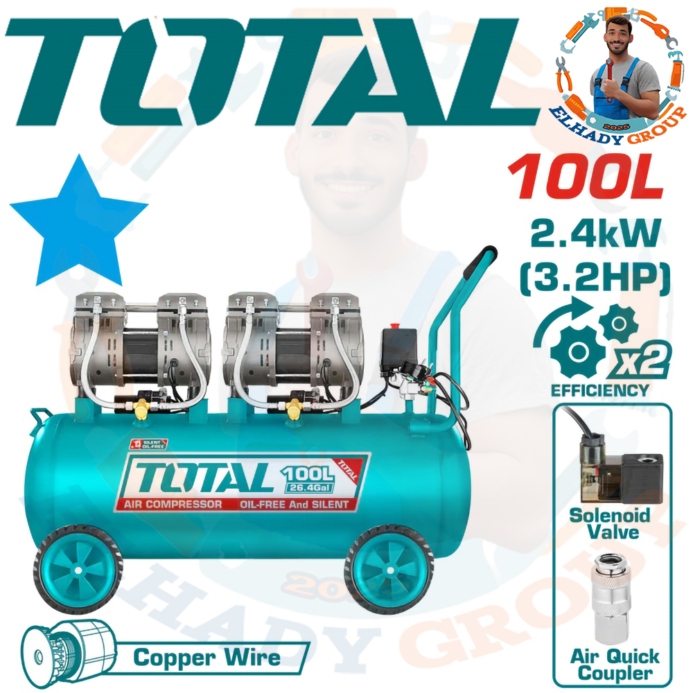 كمبروسر هواء 100لتر 3.2حصان 2هيد كاتم صوت توتال_TCS2241008