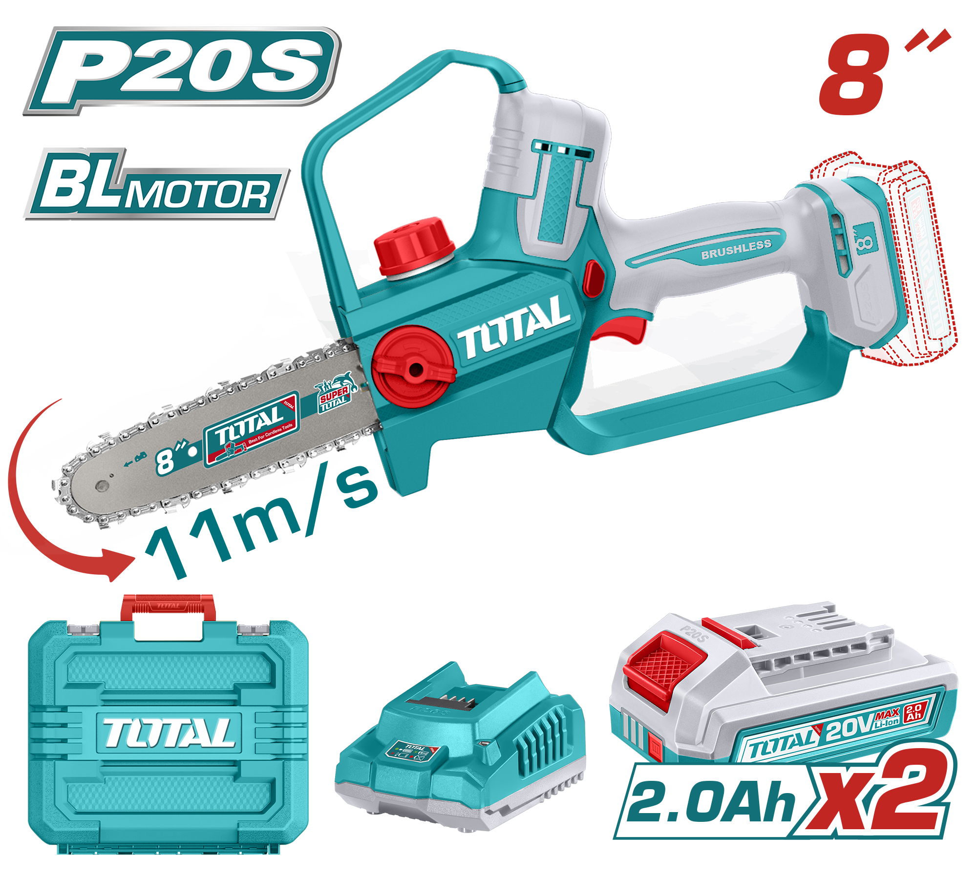 منشار شجر 8″ 20فولت 2بطارية 2امبير توتال_TGSLI20882