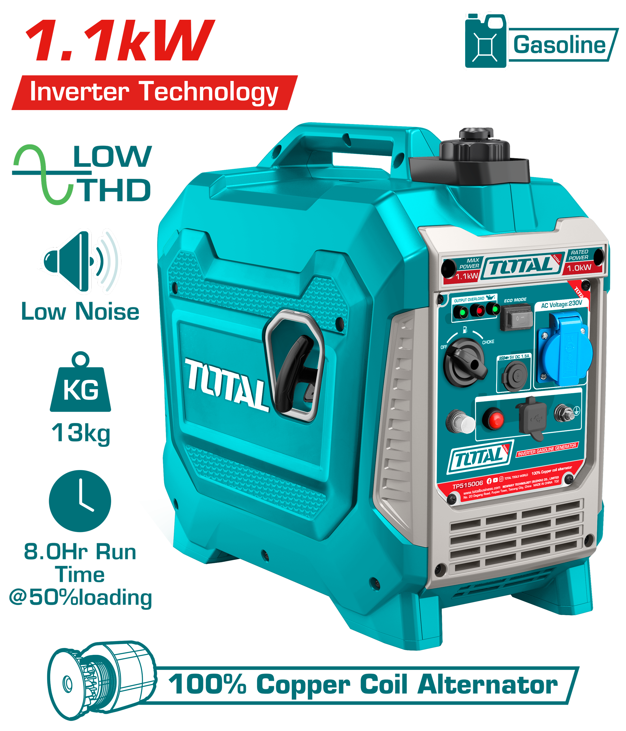 مولد كهرباء 1.1كيلو صافى 1كيلو بنزين كاتم صوت انفرتر توتال_TP515006