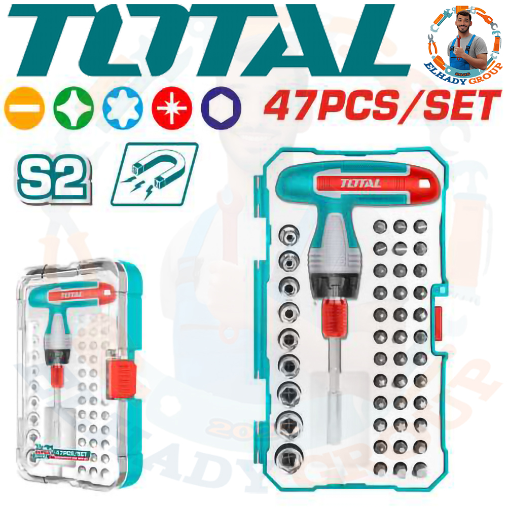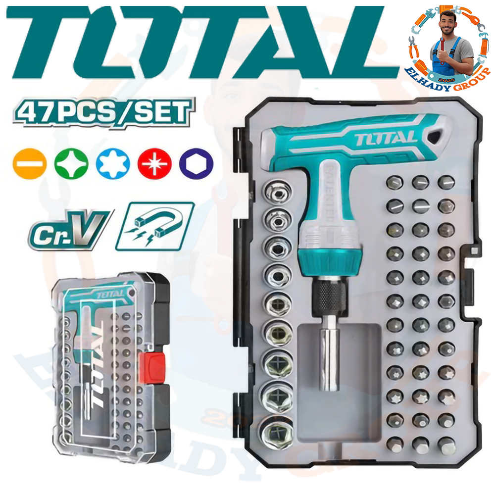 طقم مفك سنون ولقم 47قطعة راتشة حرفT توتال_TACSD30476