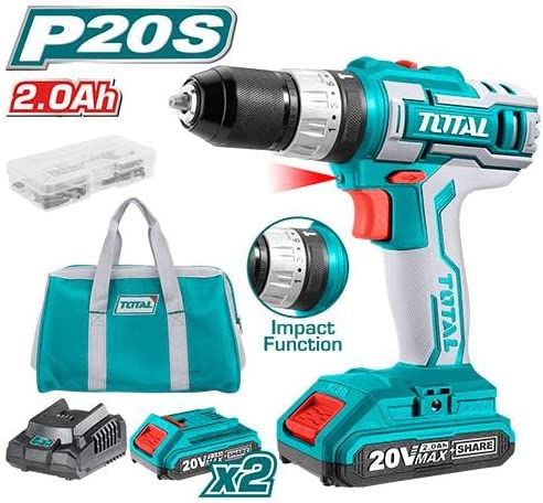 TIDLI2002_شنيور 20فولت 10مم 2بطارية 2امبير 50قطعة دقاق توتال